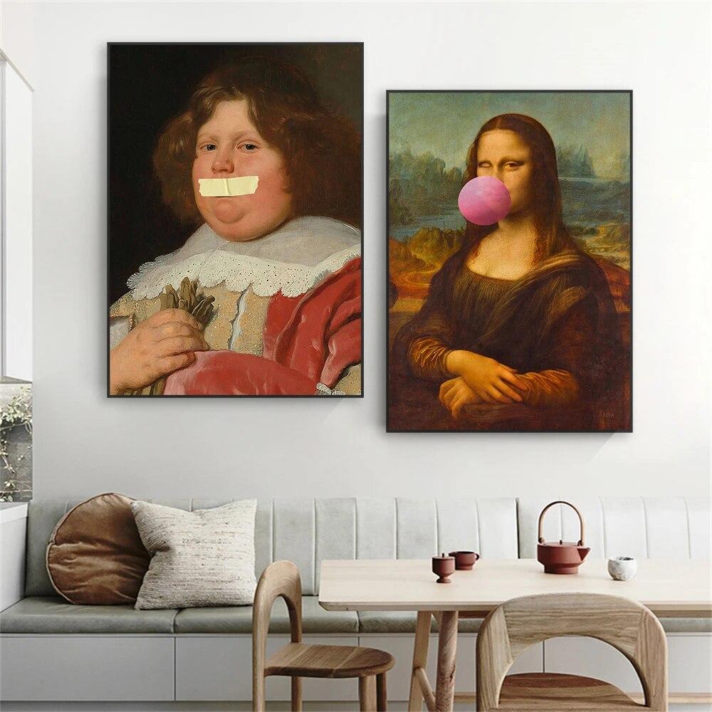 Винтажная портретная картина маслом с принтом, постер, картина маслом, угрюмый Ренессанс, художественные принты, забавная Мона Лиза, холст, картина, декор для комнаты