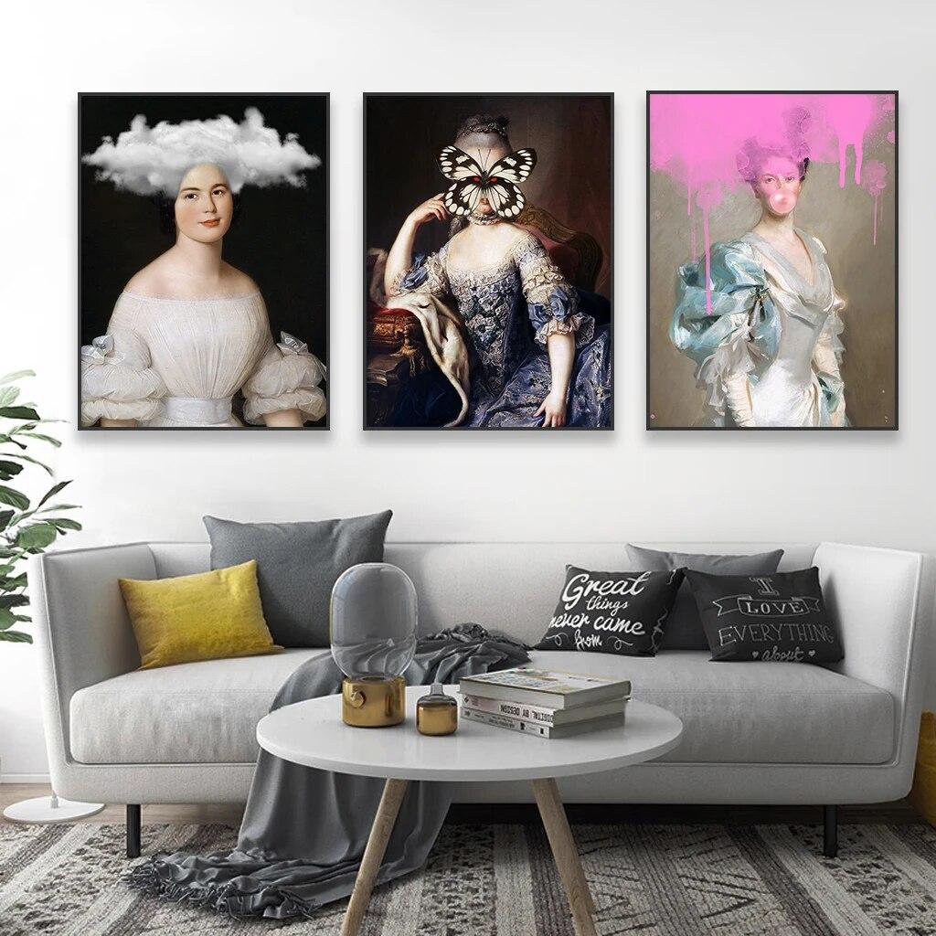 Элегантная Леди Жвачка Арт Принт Классическая Картина Маслом Отпечатки На Холсте Ретро Женский Портрет Холст Картина Ренессанс Арт Декор