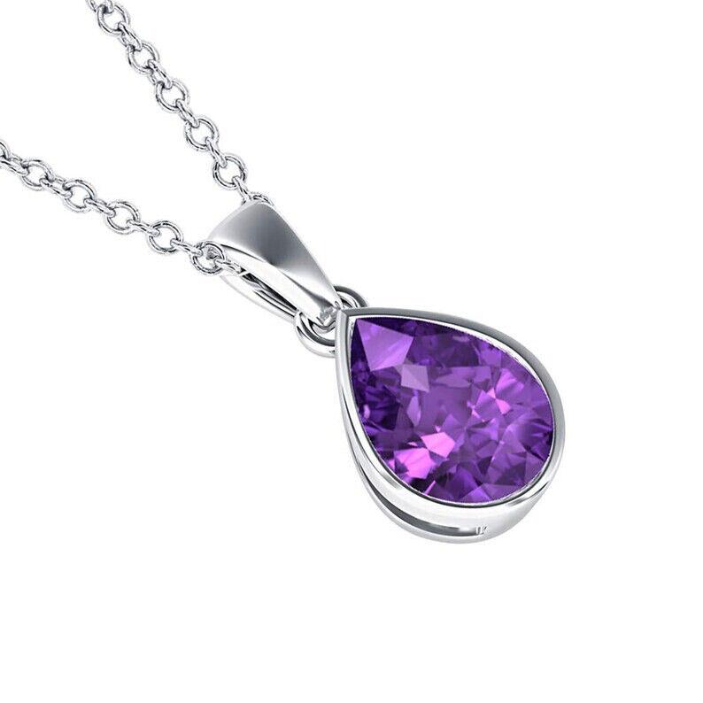 Ожерелье с подвеской из натурального аметиста/Подвеска из драгоценного камня с аметистом из стерлингового серебра