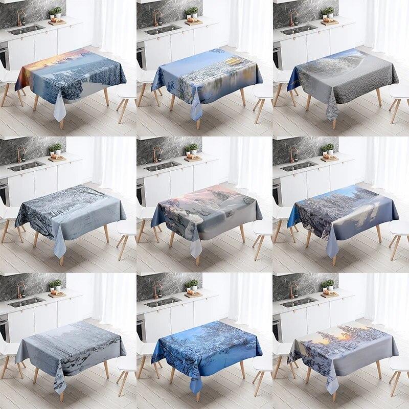 Зимняя снежная скатерть, красивая, необрастающая, водонепроницаемая, прямоугольная, кухонный стол, украшение для дома