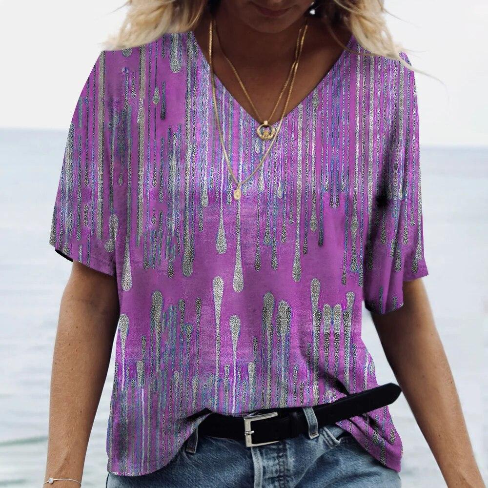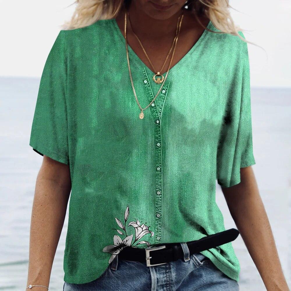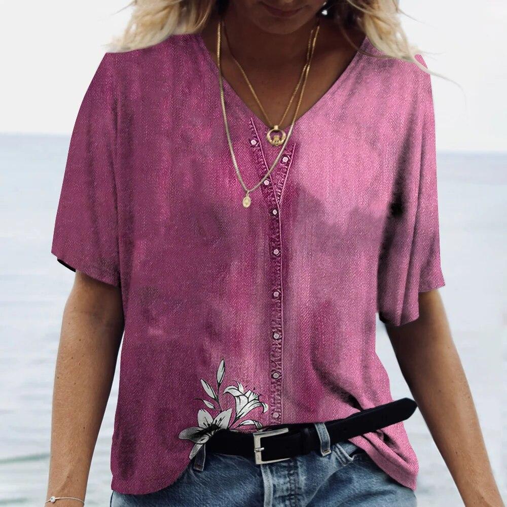 Лето 2022, женская футболка, короткая одежда с v-образным вырезом, модные футболки с 3D цветочным принтом, топы в стиле Харадзюку, 5xl, повседневные женские футболки большого размера