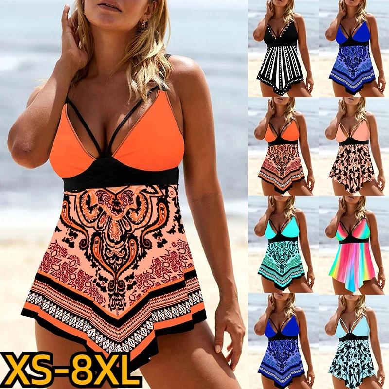 Новинка 2024 года, летняя пляжная одежда, пляжный купальник из двух предметов, танкини с 3D принтом, женские модные свободные монокини, купальник XS-8XL