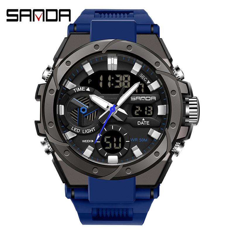 SANDA модные многофункциональные уличные водонепроницаемые электронные часы в стиле милитари с подсветкой