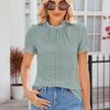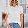 2024 весна лето женская кружевная блузка с коротким рукавом повседневная рубашка с воротником-стойкой свободные плиссированные футболки элегантные топы с вырезами 30561