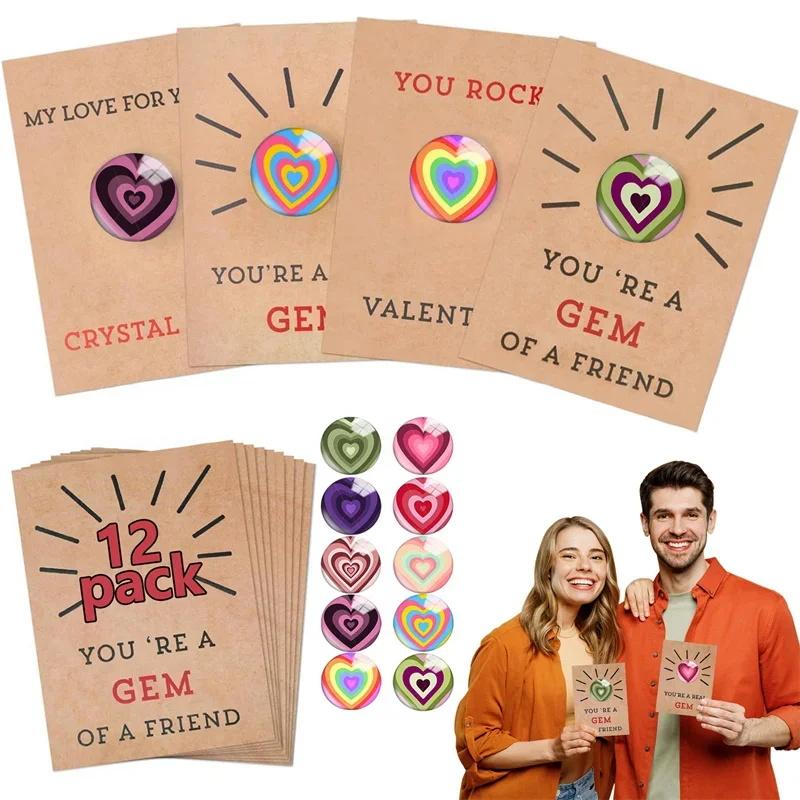 1. Расширенные возможности: Улучшите свое послание ко Дню святого Валентина с помощью наших открыток-сердечек ко Дню святого Валентина.. В набор входят 12 карточек разного дизайна, каждая из которых украшена ярким кристаллом в форме сердца.. Благодаря большему количеству вариантов выразить свою любовь изысканным и уникальным способом стало еще проще.