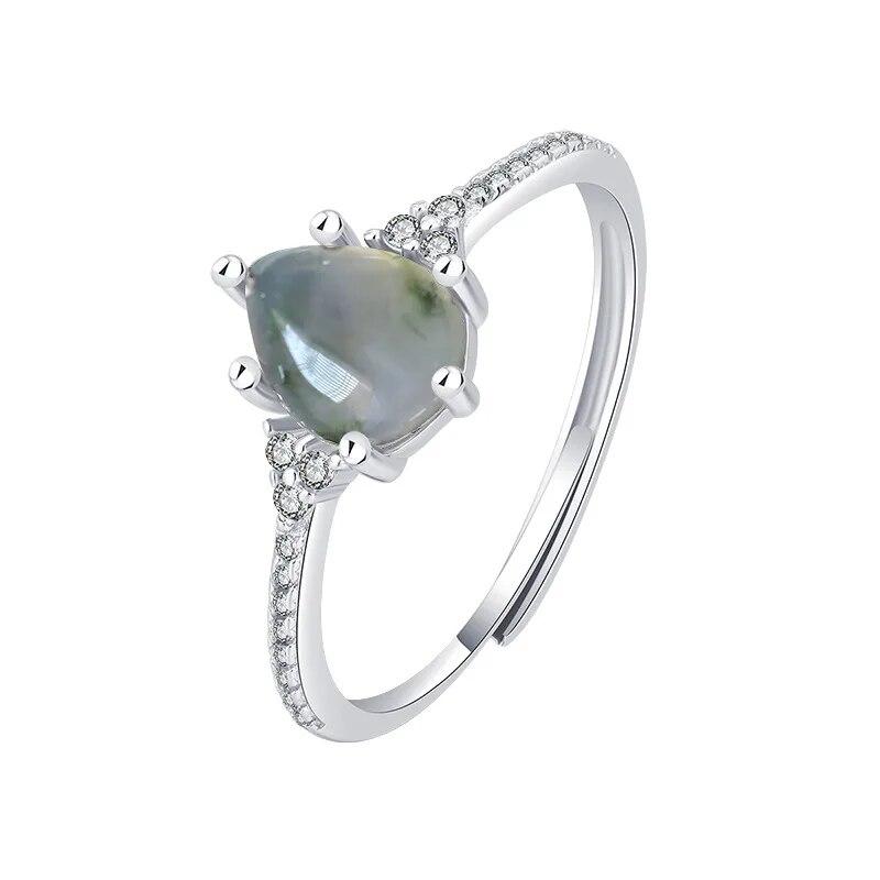 Роскошное кольцо из натурального камня с текстурой различных зеленых мхов и трав, агат Vouple, кольцо для женщин, стерлинговое серебро, подарок на помолвку, ювелирные изделия