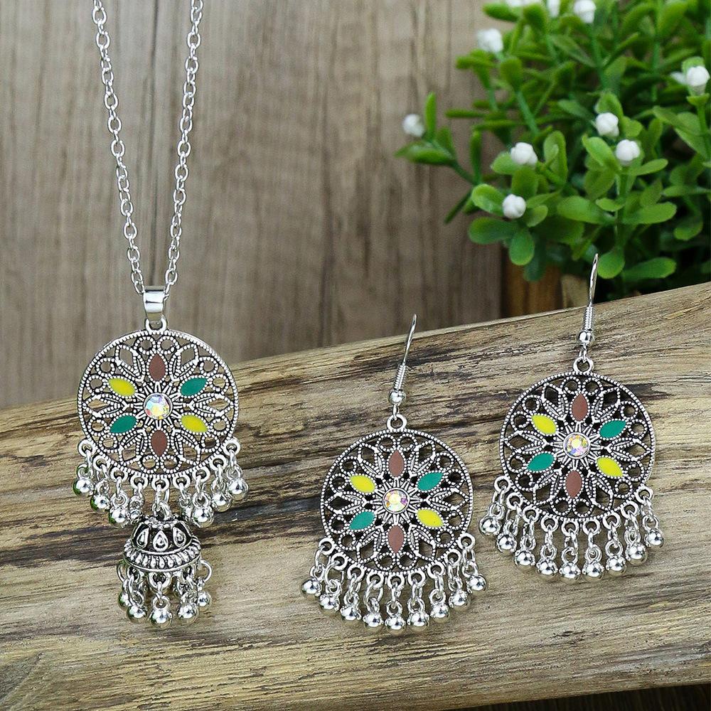 Винтажное модное ожерелье в богемном национальном стиле, длинная преувеличенная индивидуальная цепочка для одежды, женская цепочка с аксессуарами, ожерелья, серьги, комплект — купить товар онлайн с бесплатной доставкой по всему миру!