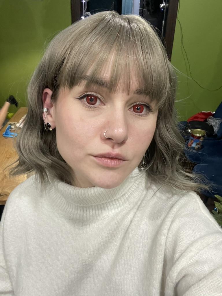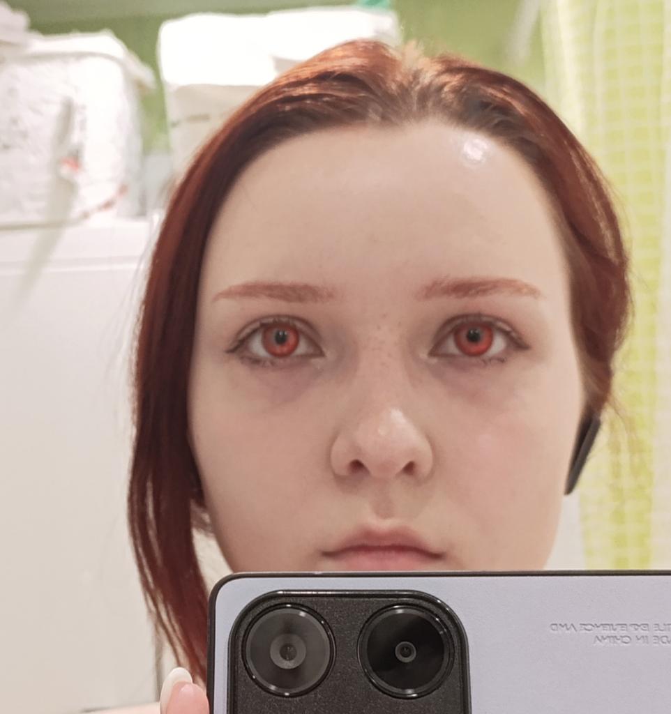 Мягкие, голубые глаза перекрывают хорошо. Видно в них хорошо. Немного видно свой цвет в некоторых местах, но так даже натуральнее смотрится.
