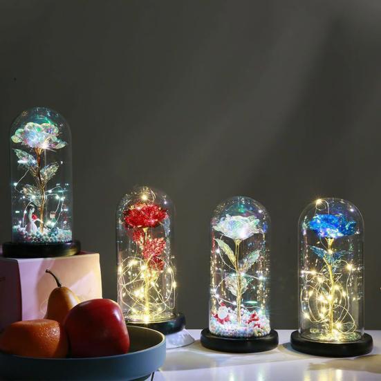 Светодиодная лампа со стеклянной крышкой Пейзаж Декоративная роза Цветок микросвет Рождественский подарок