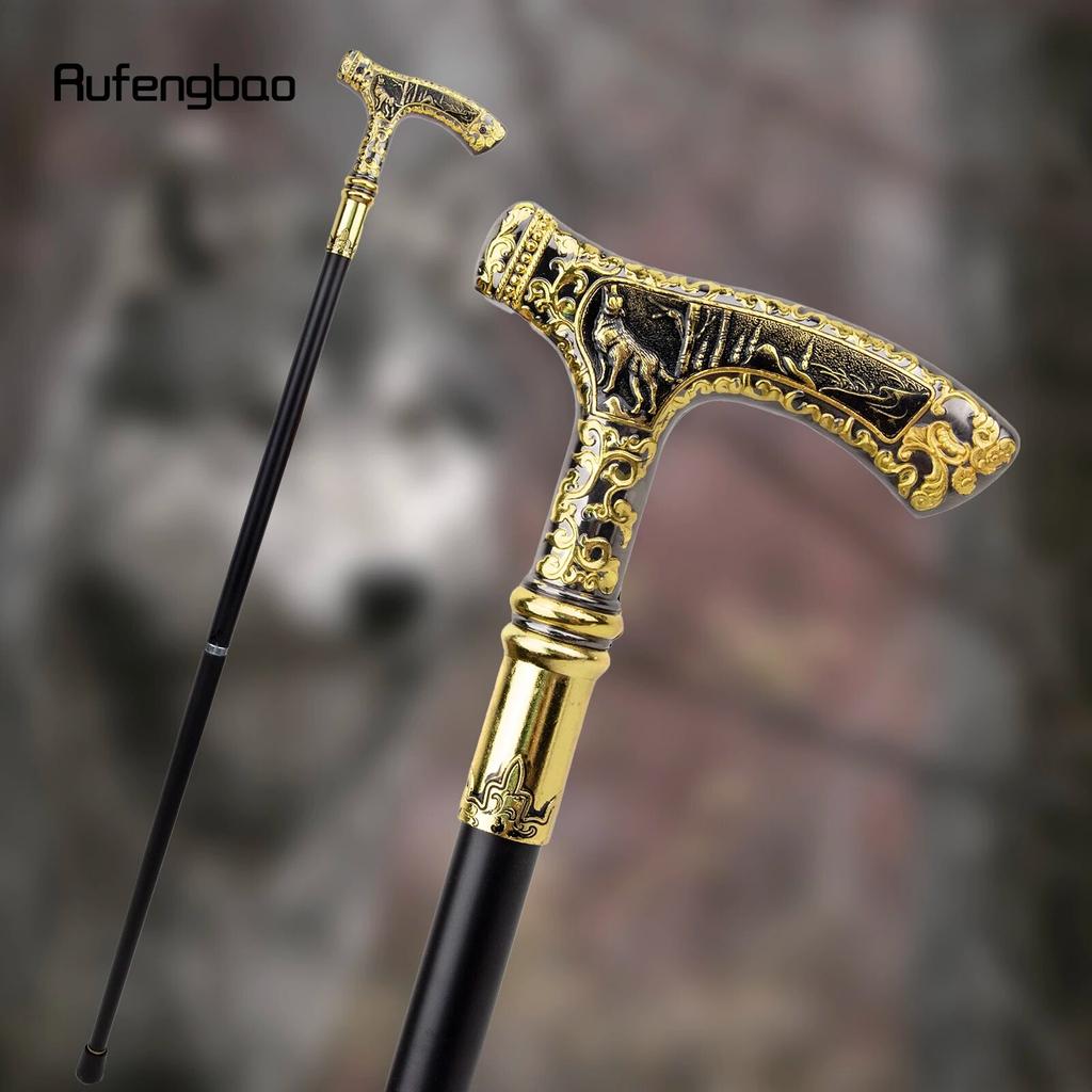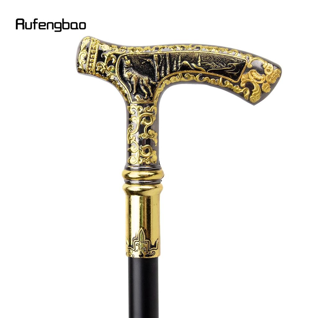 Золотая, черная, роскошная трость с волчьей ручкой, модная декоративная трость, элегантная трость для косплея, ручка Crosier 90 см