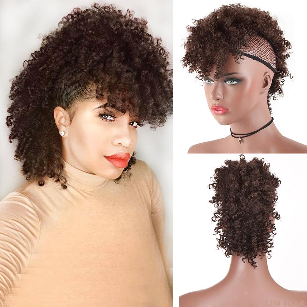 MISS WIG Синтетические коричневые вьющиеся шиньоны ирокез на заколке для наращивания волос, высокий пышный афро натуральный хвост