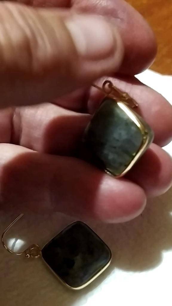 Серьги приехали: одна серьга из двух запчастей, и при попытке впихнуть камешек в оправку он выпадает снова. Вторая серьга с обеих сторон имеет выбоины и царапину. Камень темно серый с черными вкраплениями, иризации практически не имеет(пара лёгких микроскопических искорок).