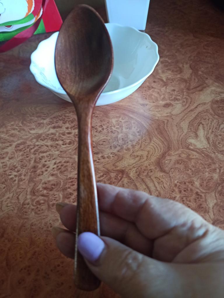Деревянная ложка. Купила деревянную суповую ложку для своего кулинарного видеоблога— осталась очень довольна. Ложка аккуратно обработана, поверхность гладкая, приятный тёмный древесный оттенок. Форма классическая, удобная для набора супа и каши. Размеры близки к заявленным (примерно 18,5 × 3,5 × 1 см). Нет заусенцев и неровностей, шлифовка выполнена тщательно. Ручка удобная, не скользит в руке, очень лёгкий вес. Рекомендуется мыть вручную тёплой водой с мягким моющим средством и не замачивать длительно, чтобы не деформировалась и не потеряла защитное покрытие. Для продления службы советую периодически обрабатывать пищевым маслом (растительным или специальным для посуды). Отличная деревянная ложка, красивая, удобная и практичная в том числе и для повседневного использования. Рекомендую тем, кто ценит натуральные кухонные принадлежности. ⭐ Продавец упаковал товар в почтовый конверт с пупыркой внутри. ⭐ Трек номер отслеживался до почтового отделения. ⭐ В приложении пришло уведомление о готовности к выдаче заказа. ⭐ Доставка в Петербург заняла 22 дня.