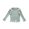 2024 весенняя футболка с длинными рукавами для девочек, детская трикотажная нижняя рубашка в рубчик, кружевная облегающая футболка с круглым вырезом для детей