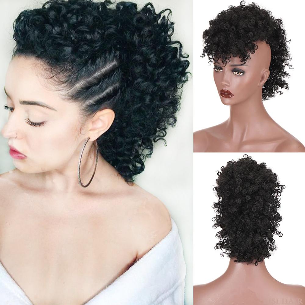 XINRAN Синтетический парик для чернокожих женщин Ирокез Кудрявый вьющийся пучок волос Афро Высокий пышный короткий хвост с челкой