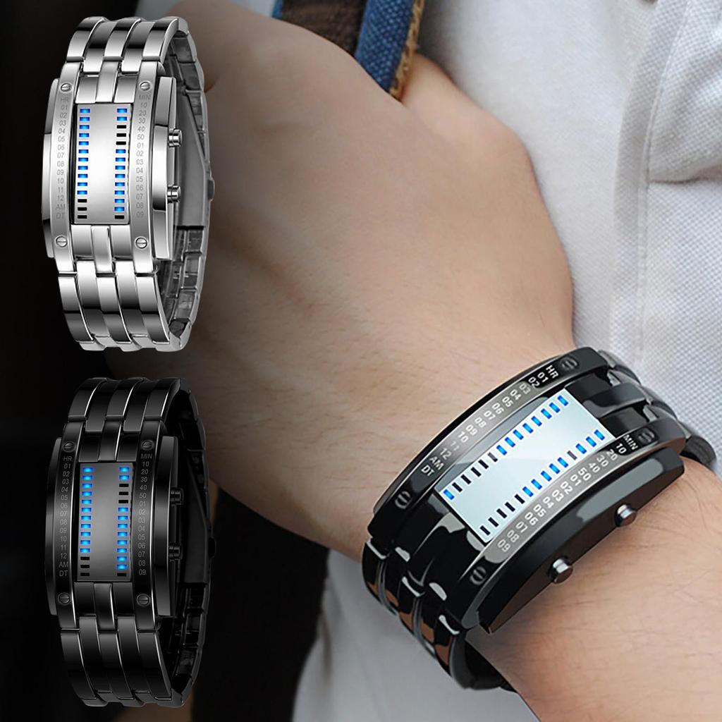 Роскошные мужские спортивные часы из нержавеющей стали с цифровым светодиодным браслетом и датой — купить товар онлайн с бесплатной доставкой по всему миру!