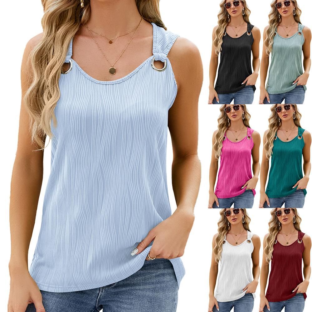 Летняя однотонная майка без рукавов с круглым вырезом, женские свободные женские топы с металлическим кольцом — купить товар онлайн с бесплатной доставкой по всему миру!