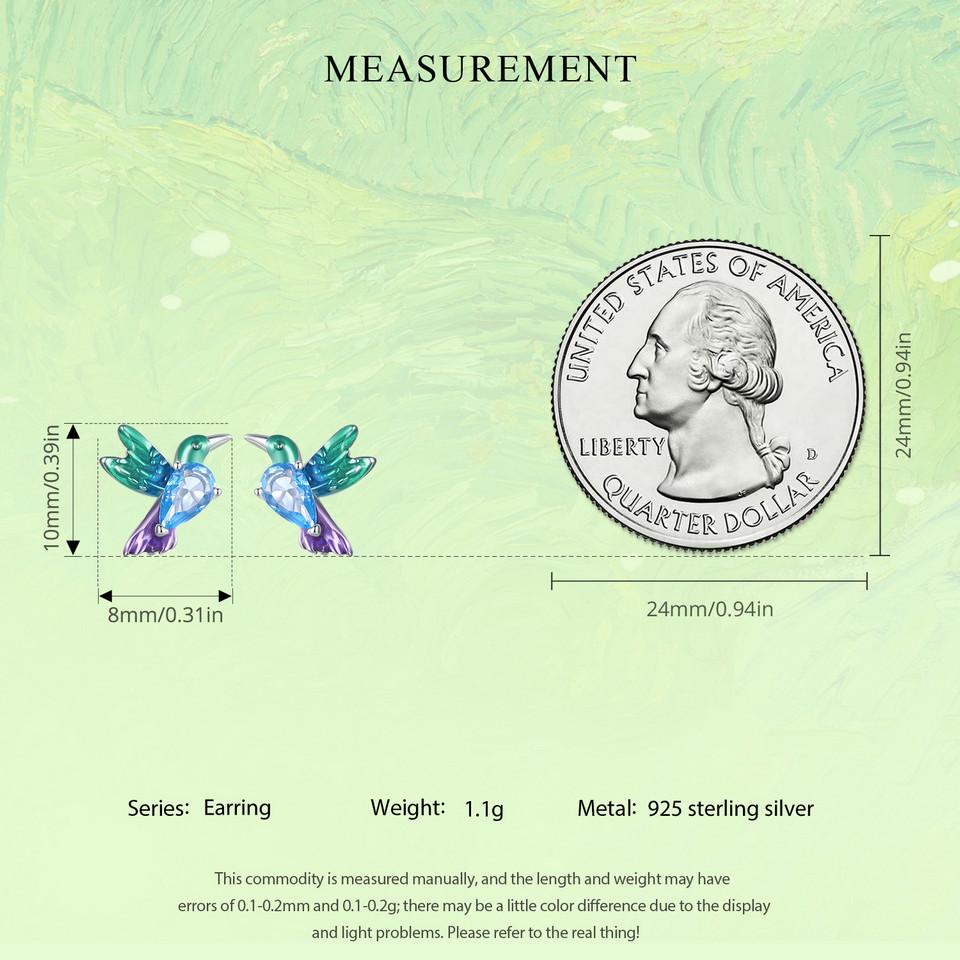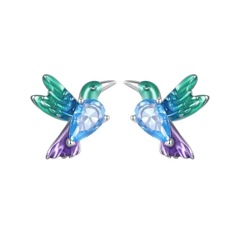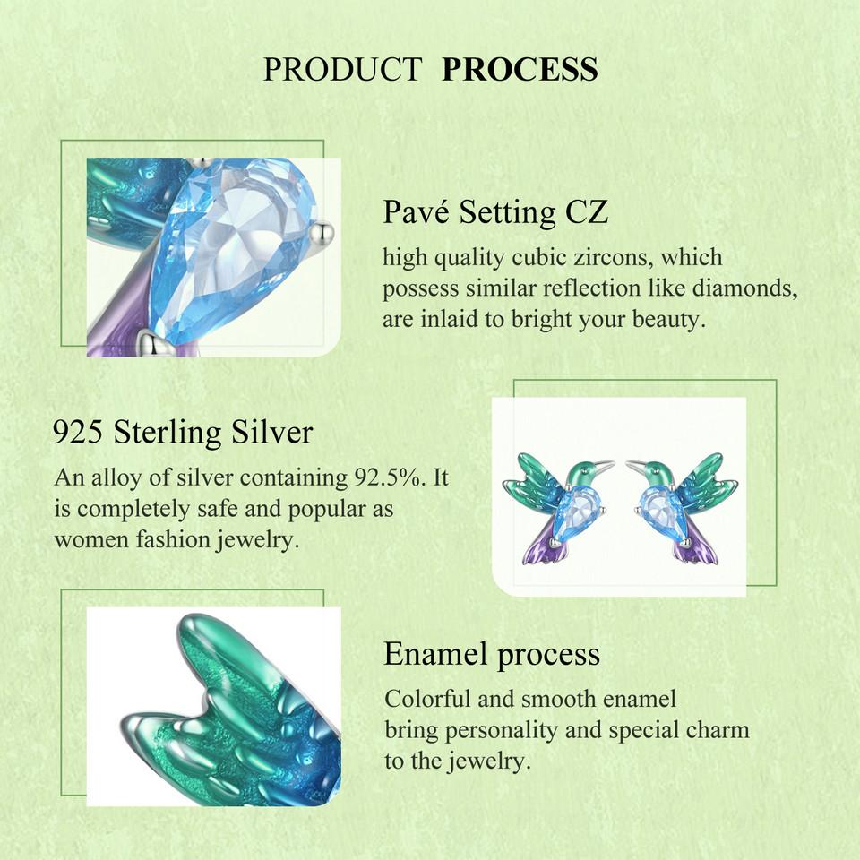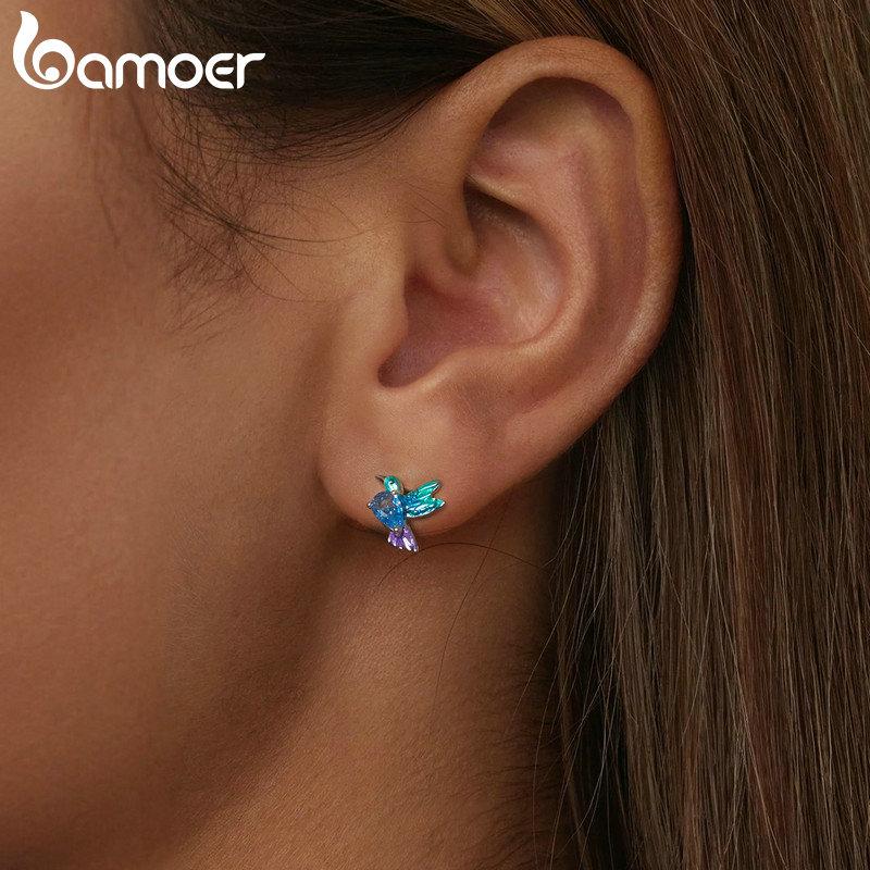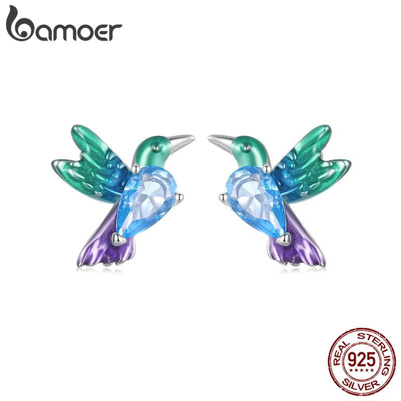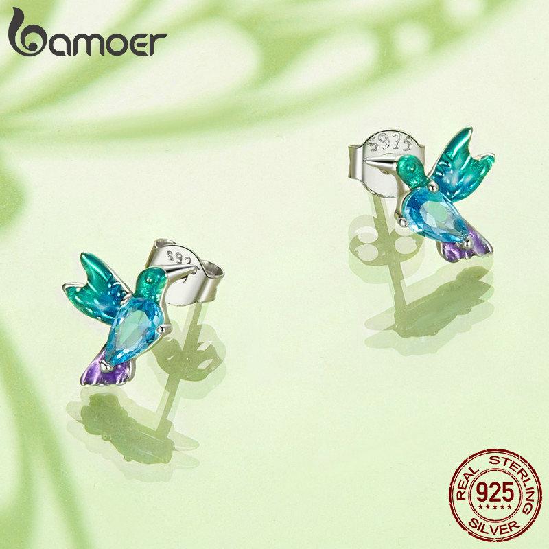 Bamoer стерлингового серебра 925 пробы зеленая эмаль серьги-гвоздики с изображением колибри синий циркон серьги с птицами для женщин вечерние ювелирные изделия