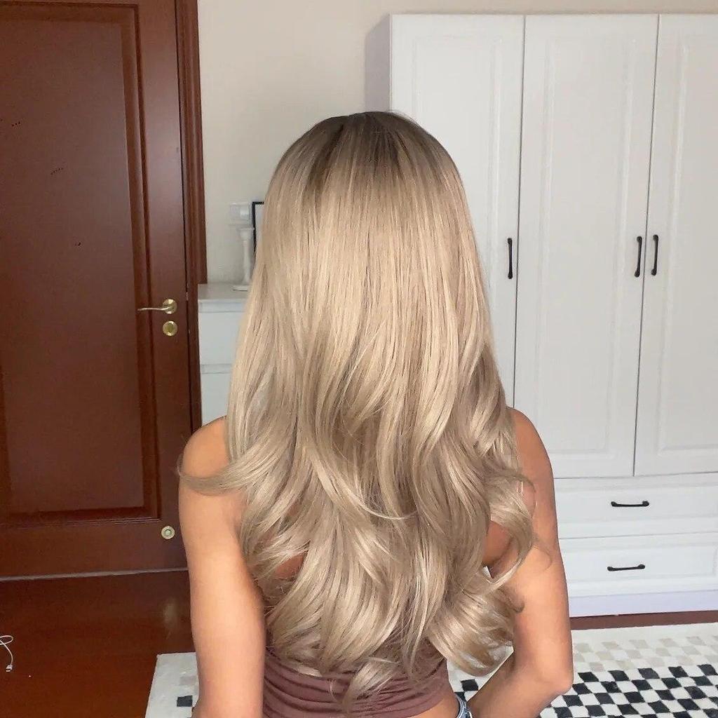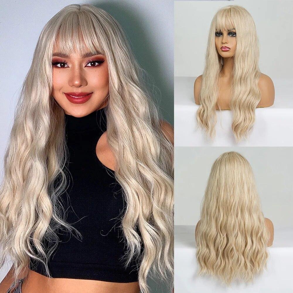 EASIHAIR Длинные волнистые светлые парики с челкой, термостойкие синтетические парики для женщин, натуральный парик с коричневым корнем, волосы для косплея
