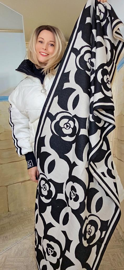 Шаль с камелиями 🤍🖤 Очень понравилась! Благородная расцветка, красивые цветы, смотрится нарядно) Качество замечательное, нежный искуственный кашемир. Мягкая нежная шаль, нет совершенно ощущения искуственной ткани, как натуральная. Хороший большой размер: 185 см на 65см. Можно носить как головной убор, как шарф, как шаль, все варианты хороши. Я не первый раз беру такие палантины, всегда отличное качество, нежность и аккуратность. От души рекомендую 🧡