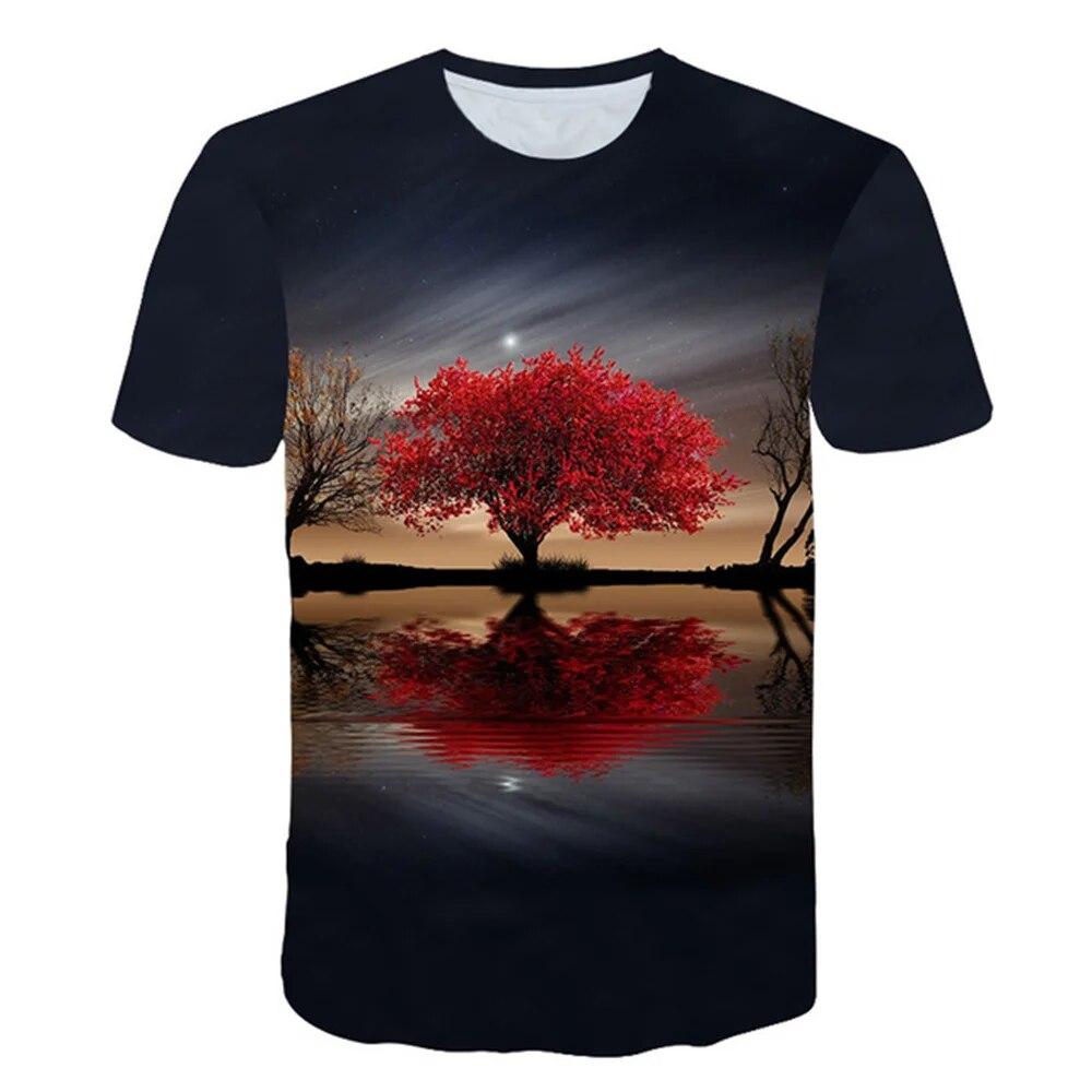 Летняя футболка с пейзажным узором, мужская модная верхняя одежда с природными пейзажами, красивая повседневная модная одежда с 3D принтом — купить товар онлайн с бесплатной доставкой по всему миру!