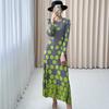 Женские осенние платья, новинка, плиссированная длинная юбка с круглым вырезом и рукавами 9/4, круглый горошек