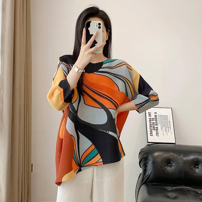 Плиссированный топ с женским принтом, новый летний свободный и обтягивающий фасон, универсальный дизайн и молодежный тренд футболок. — купить товар онлайн с бесплатной доставкой по всему миру!