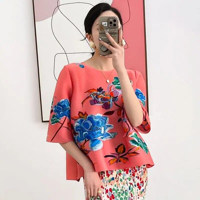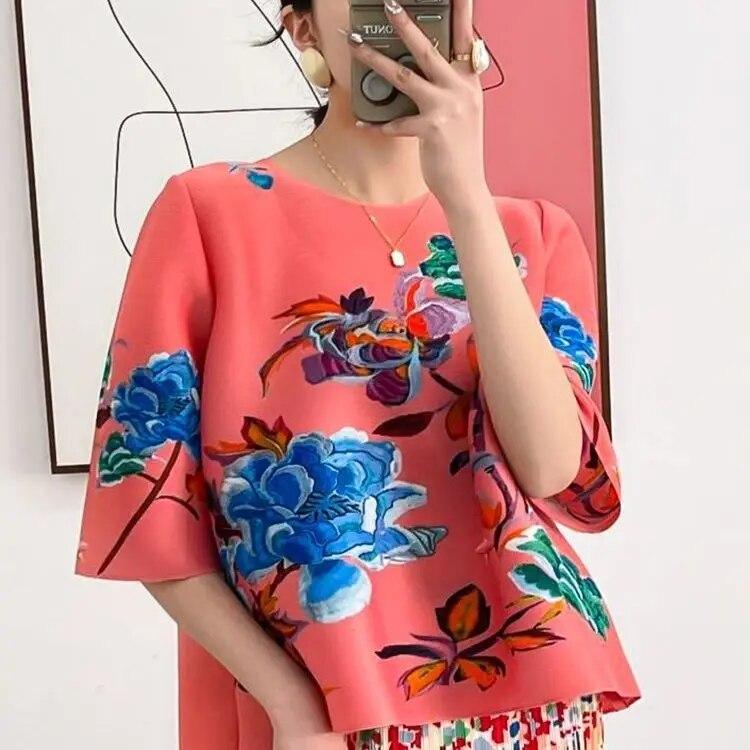 Футболка с принтом в стиле ретро в стиле ретро, летний новый высококачественный свободный топ с половиной рукавов