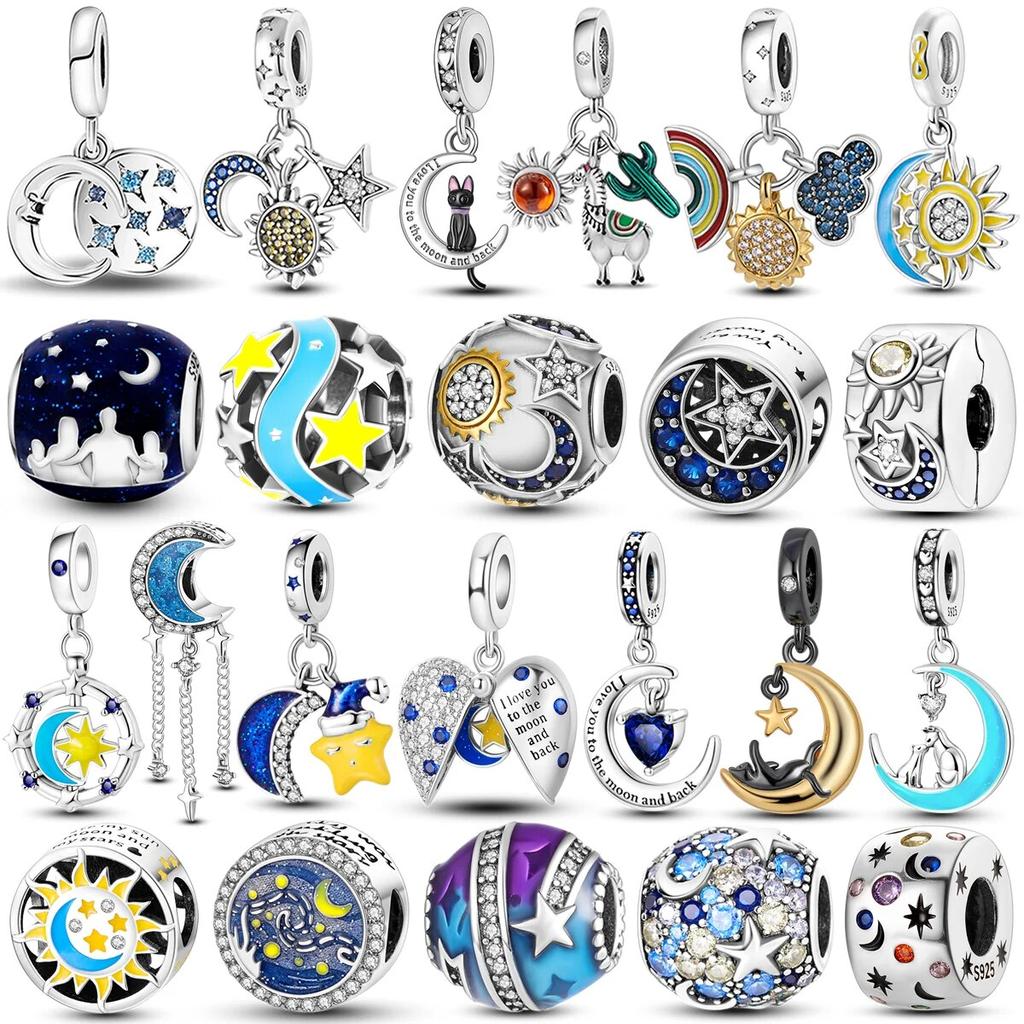 Звездная коллекция, подвески, бусины из стерлингового серебра 925 пробы, солнце, звезды, луна, висячие подвески, подходят для оригинальных новых ювелирных изделий, браслет, ожерелье