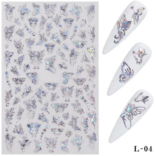 3 шт голографические 3D бабочки наклейки для дизайна ногтей клейкие ползунки красочные DIY золотые наклейки для ногтей переводные наклейки из фольги украшения