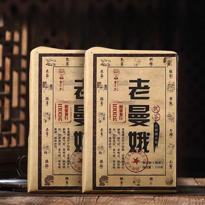 Юньнаньский приготовленный чай Пуэр Лаоманэ Пуэр Спелый чай Пуэр кирпичной выдержки Черный чай 250г