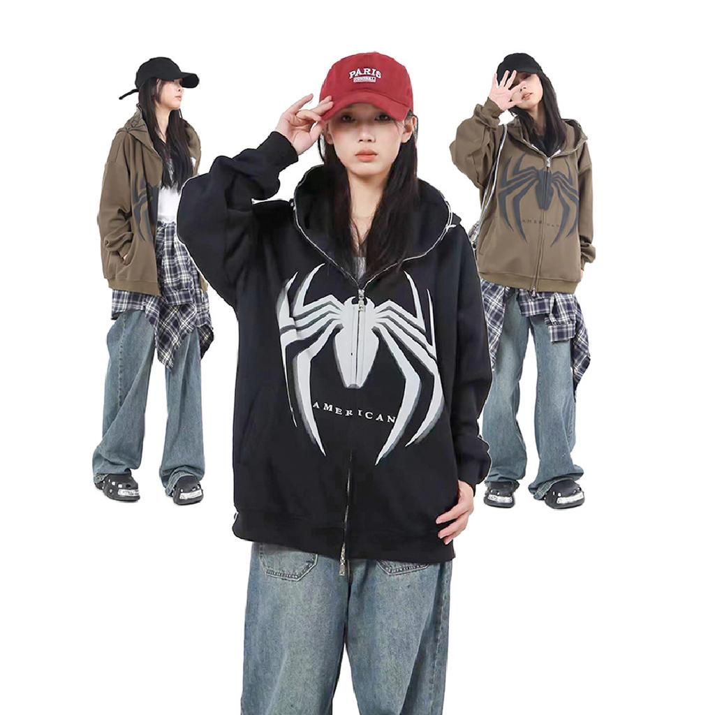 Ретро-американский топ с капюшоном и свитером с капюшоном в американском стиле High Street Spider Design Sense Fashion Trend