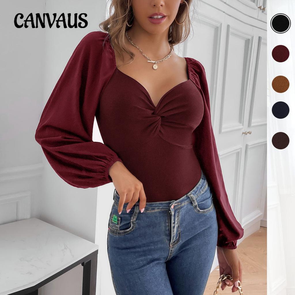 Весенне-осенняя женская блузка с французским твистом и v-образным вырезом, комбинезон с длинными рукавами, обтягивающий комбинезон