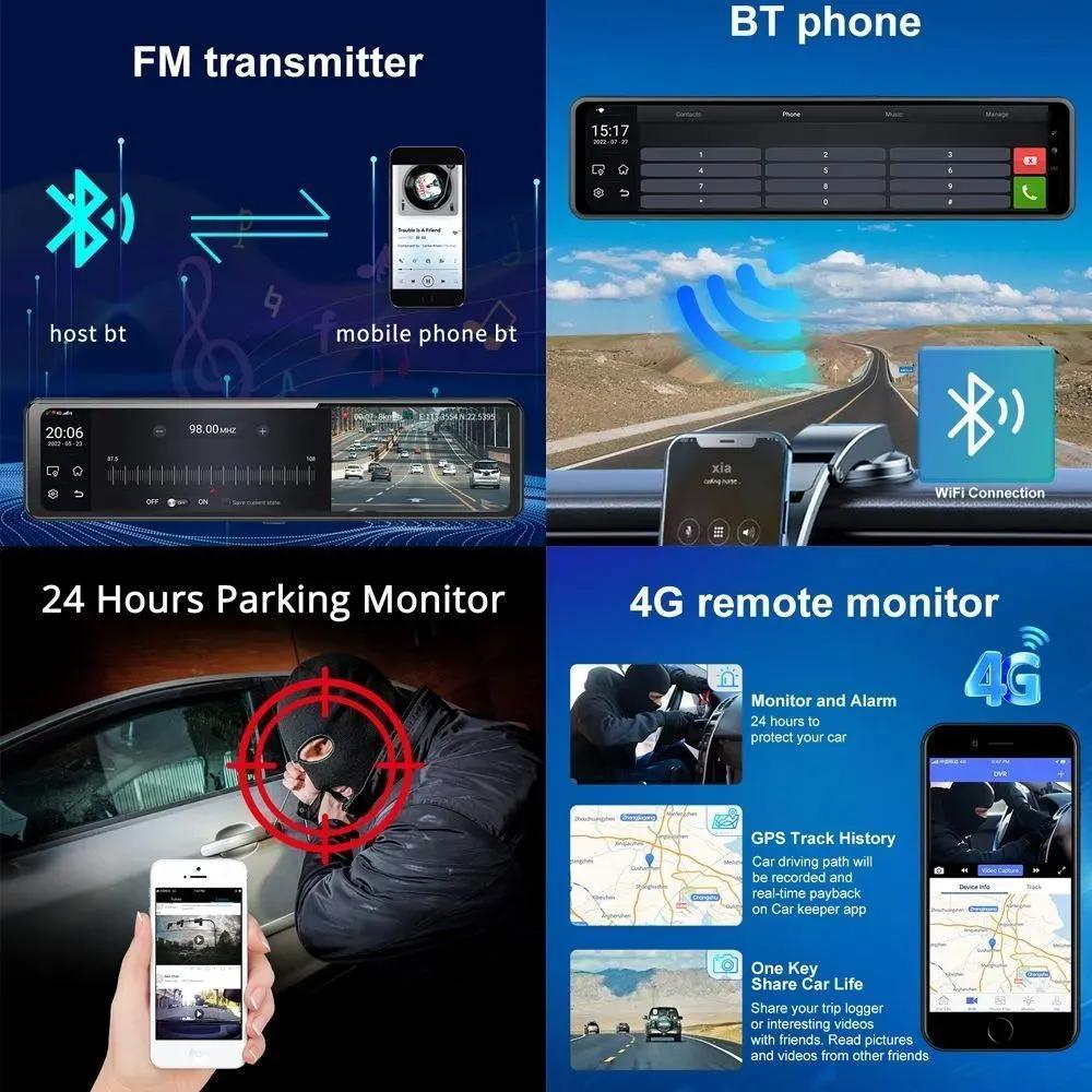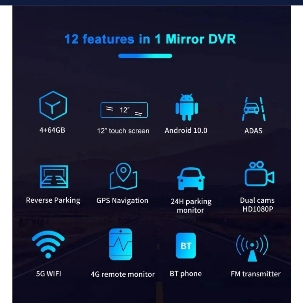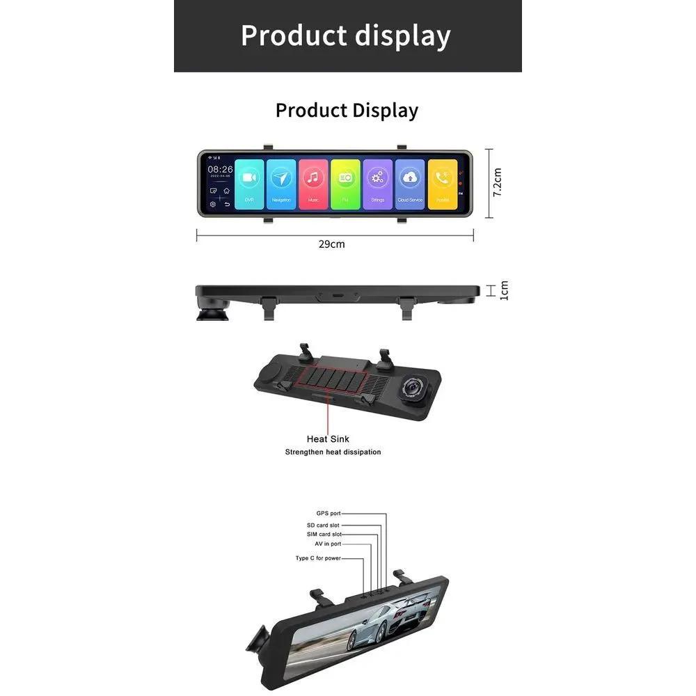 12-дюймовый беззеркальный автомобильный видеорегистратор Android 10.0 4+ 64G