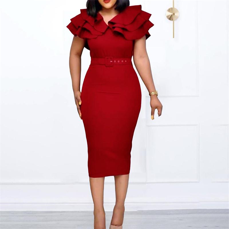 Размер платья с рюшами на рукавах Женская одежда Короткое африканское большое платье-футляр Ol
