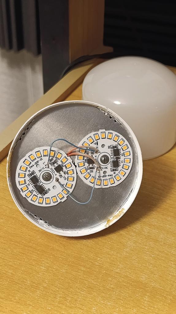 Все отлично. Взял старую лампу, вытащил драйвер и подпаял к цоколю любыми проводами. Корпуса с хорошим теплоотводом, жалко выбрасывать. Сложнее всего было разобрать старую лампочку и вытащить алюминиевую площадку, но нет ничего невозможного. На заявленные 15W светит честно, не хуже магазинных. Во второй лампе перевернул алюминиевую пластину со сгоревшими светодиодами и закрепил две новые на термопасту. Греется неслабо конечно, но свет очень яркий