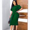 Женское платье больших размеров, летние однотонные офисные платья с высокой талией, темпераментные пригородные офисные платья с рюшами и рукавами
