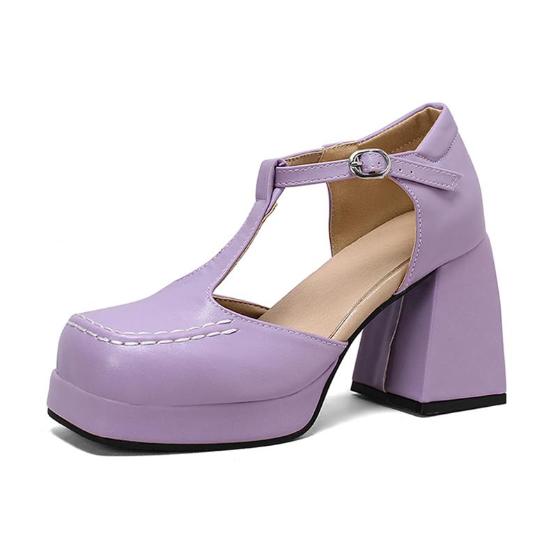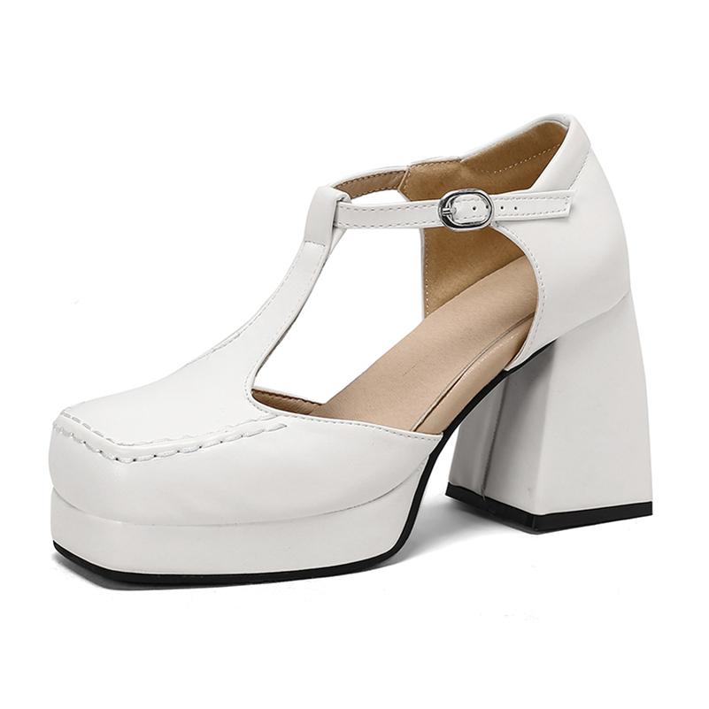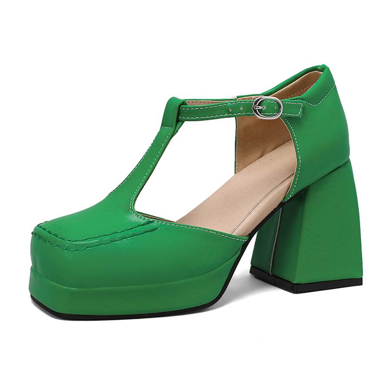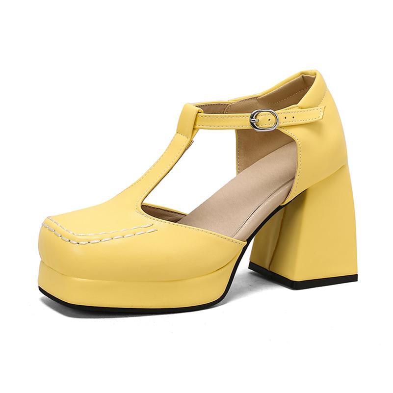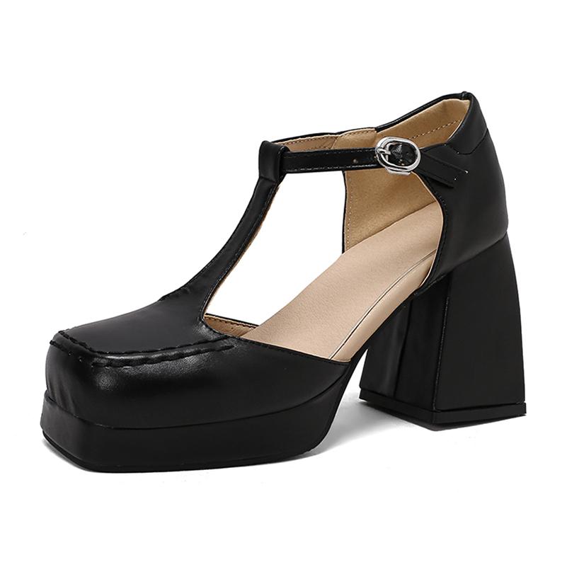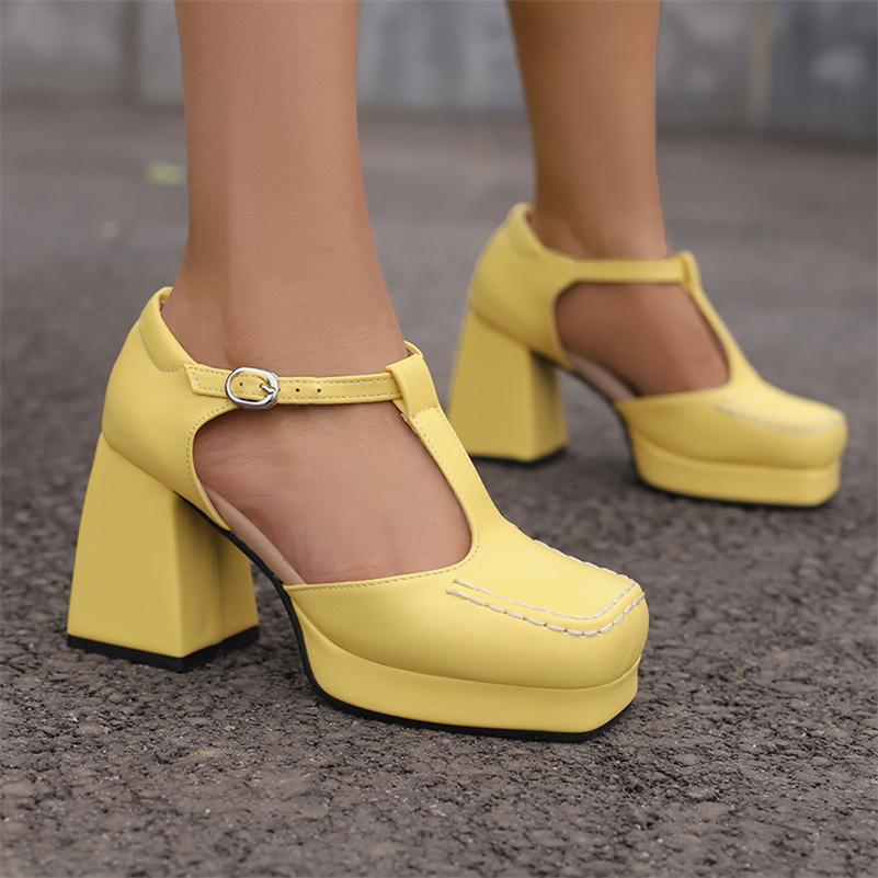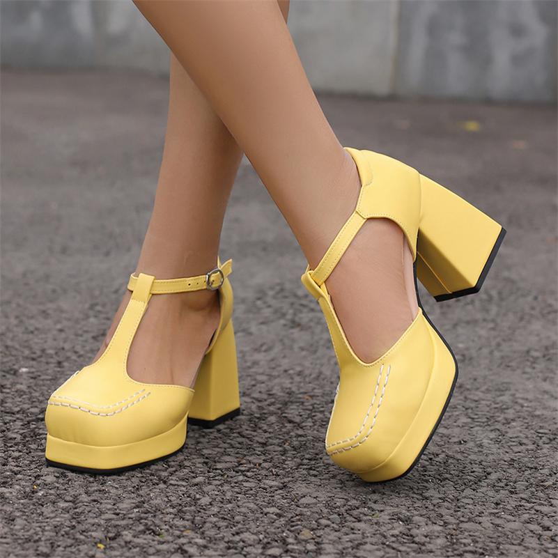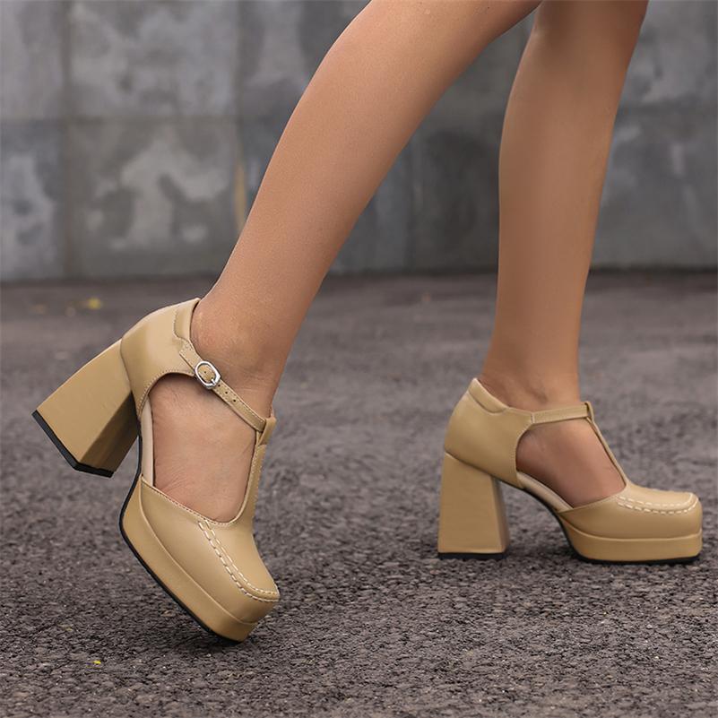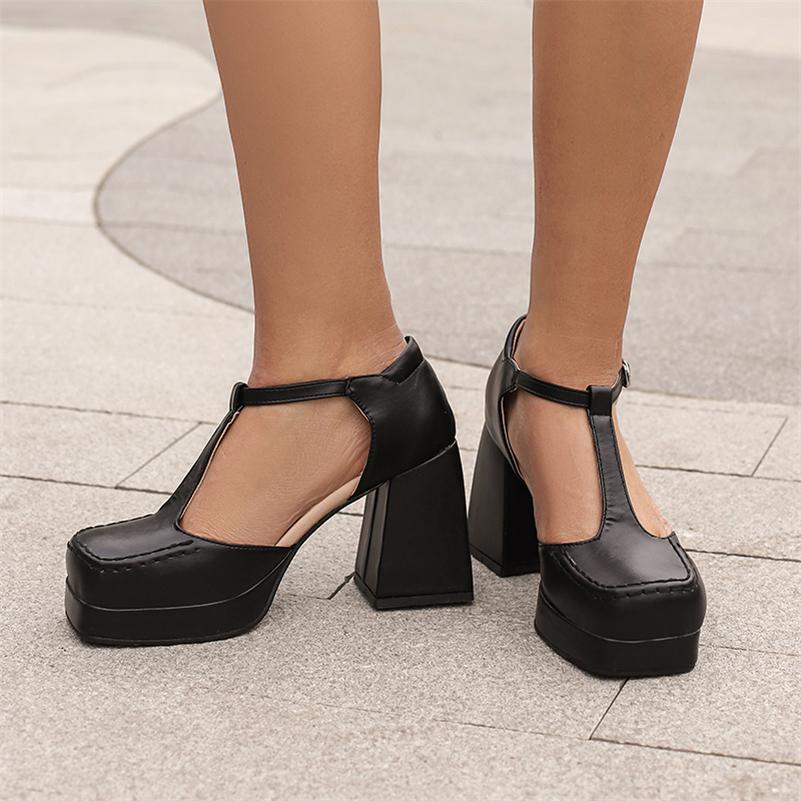 Meotina Женские двухсекционные туфли-лодочки Мэри Джейн с квадратным носком, на толстом высоком каблуке с пряжкой и Т-образной завязкой, женская модная обувь на платформе, весна-осень 46