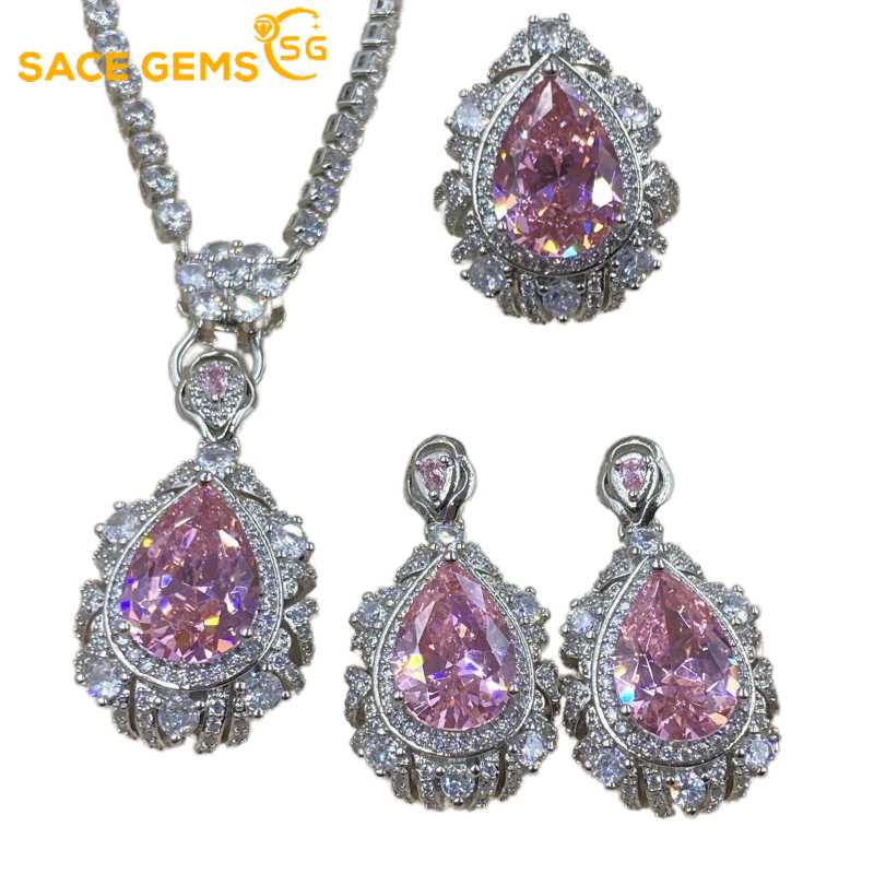 Sace Gems Классические кольца из медного сплава с цирконием, серьги, кулон, ожерелье, комплекты ювелирных изделий, подарки для свадебной вечеринки