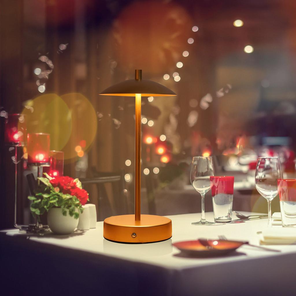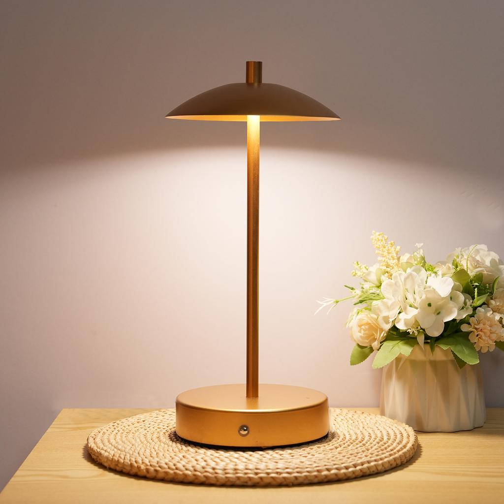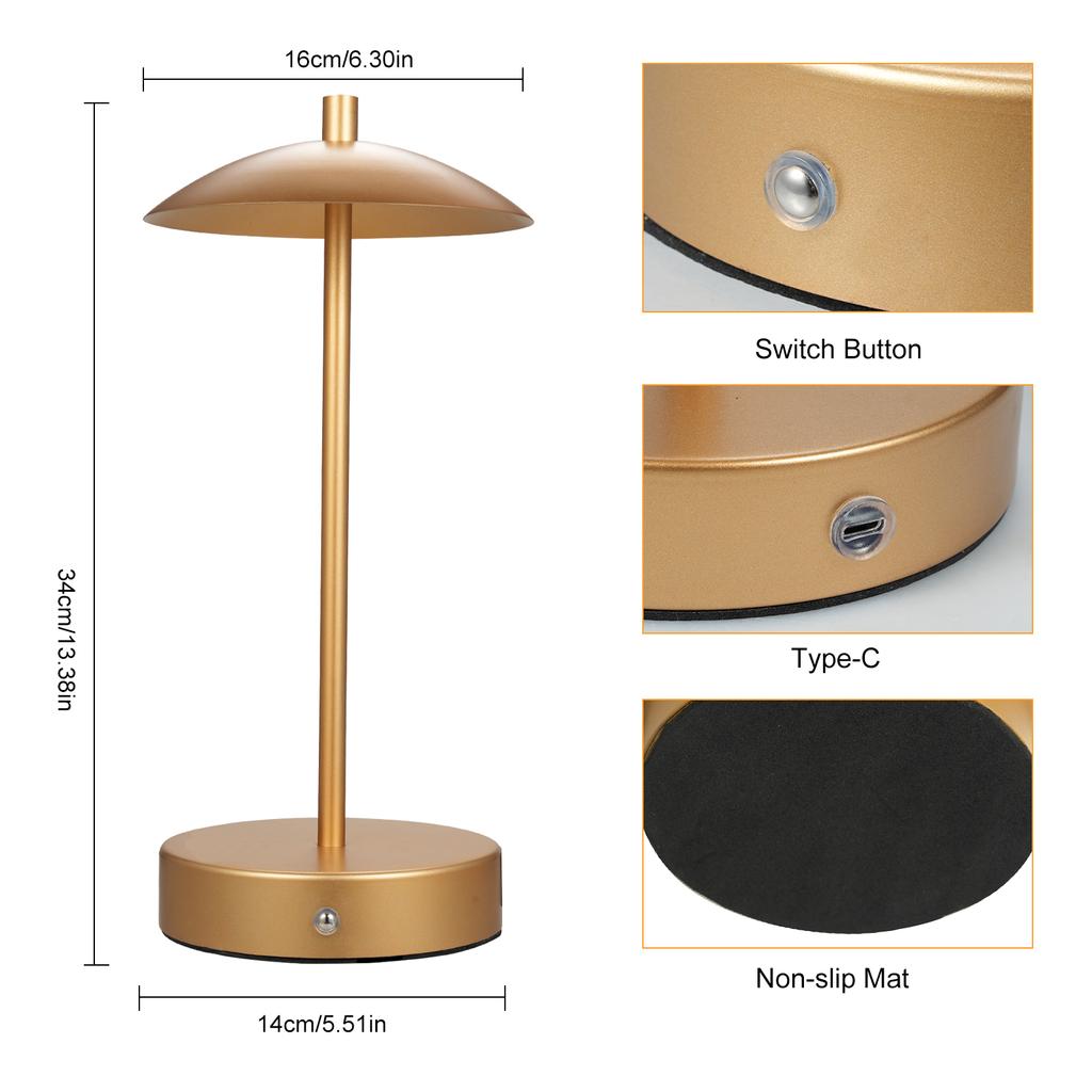Настольная лампа в стиле ретро. Золотистая матовая поверхность излучает элегантность и очарование.. Дизайн шляпы не только улучшает декоративный аспект нашей настольной лампы, но также обеспечивает мягкий и не слепящий свет, эффективно блокируя прямой свет.