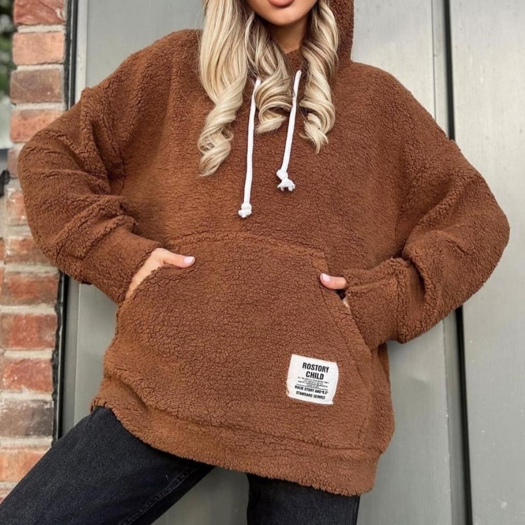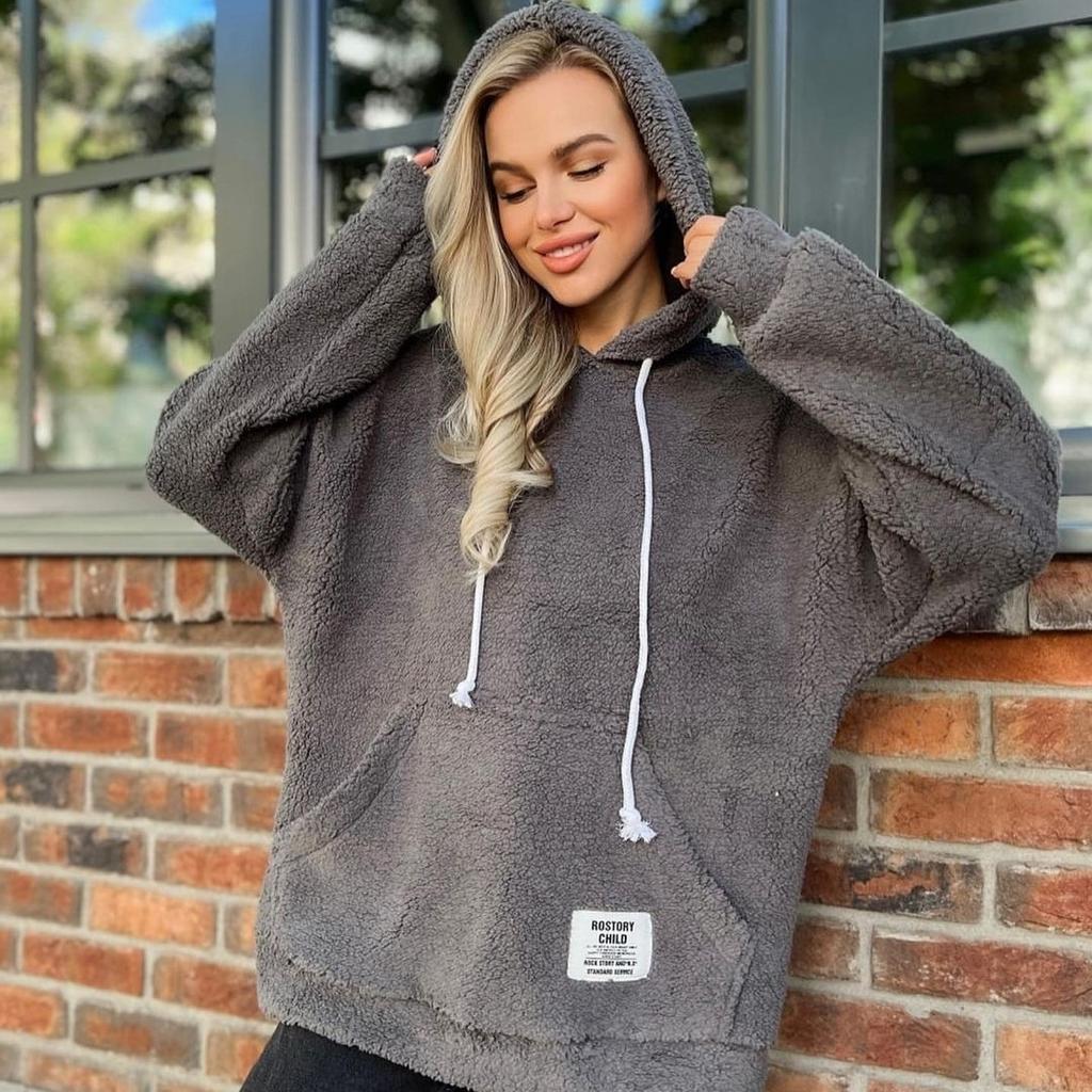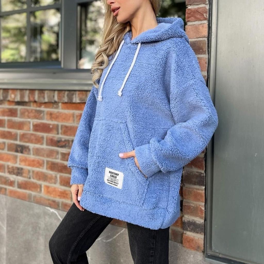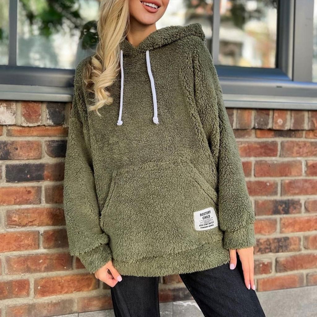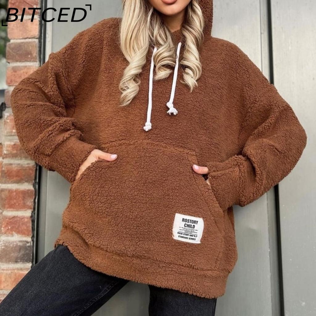 BITCED Фланелевой свободный пуловер с капюшоном и длинными рукавами, флисовая толстовка с капюшоном