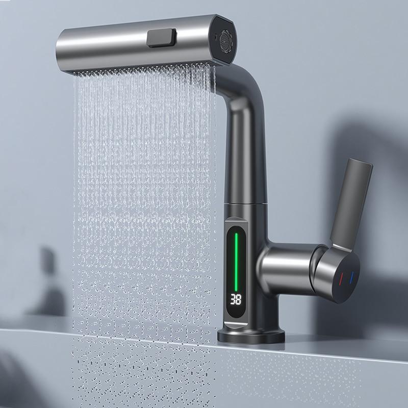 Температура водопада, цифровой дисплей, смеситель для раковины, подъемный вниз по струе, распылитель, смеситель для раковины горячей и холодной воды, смеситель для мытья для ванной комнаты
