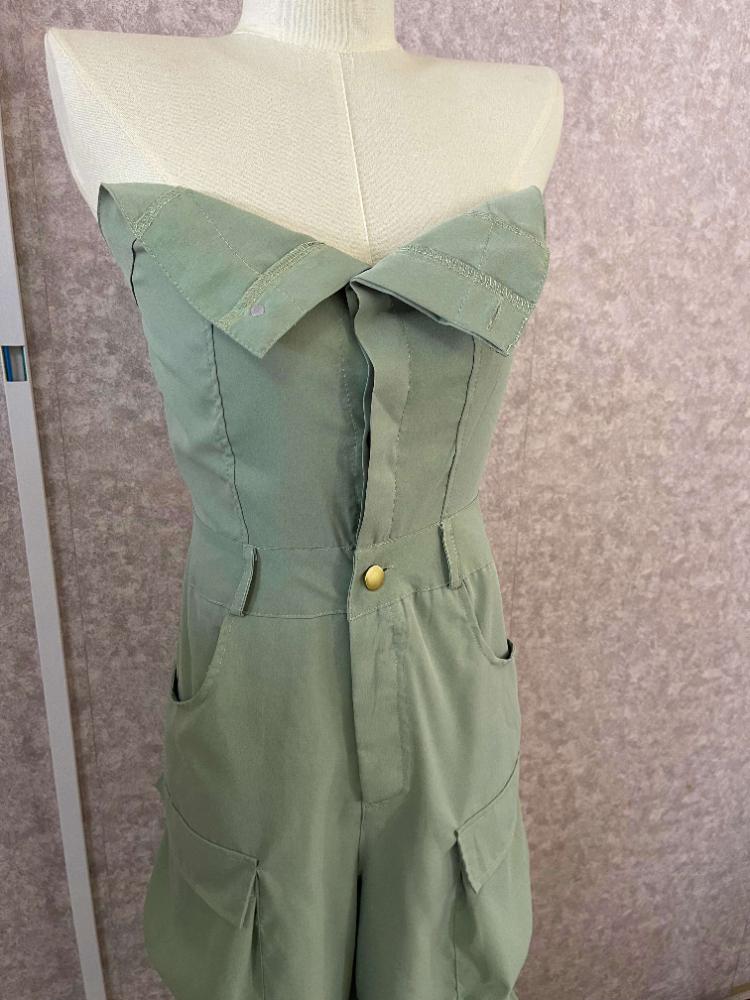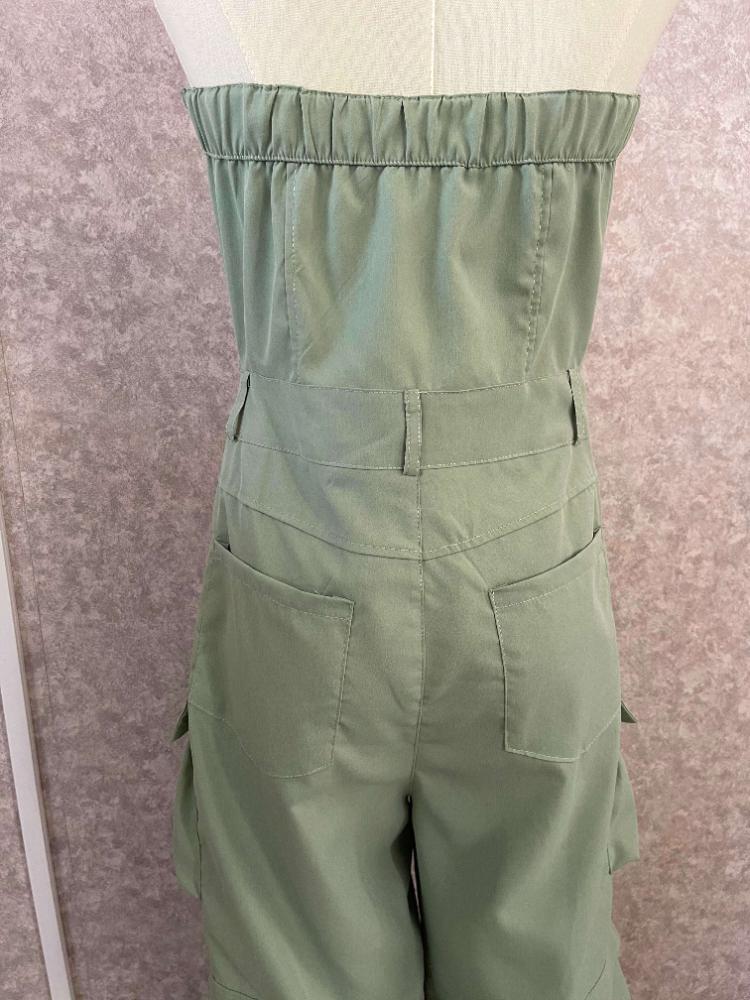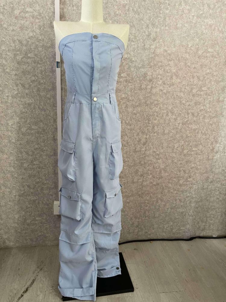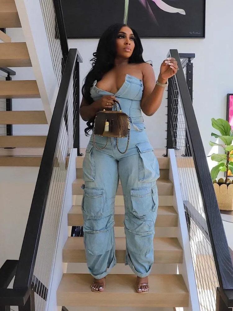 Высокая уличная мода, сексуальные комбинезоны с открытыми плечами, женские брюки-карго без бретелек на пуговицах Y2k, женские корейские карманы, дизайн, повседневный комбинезон 2024