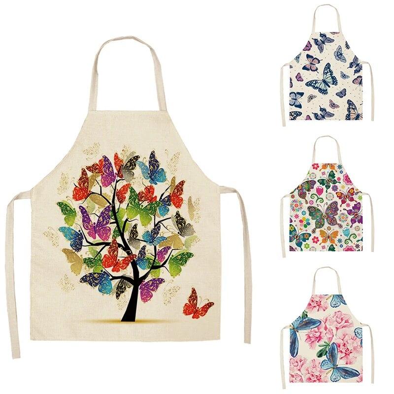 Хлопковый льняной фартук с рисунком бабочки, фартук для домашней кухни, приготовления пищи, выпечки, обеденный нагрудник, аксессуары для чистки