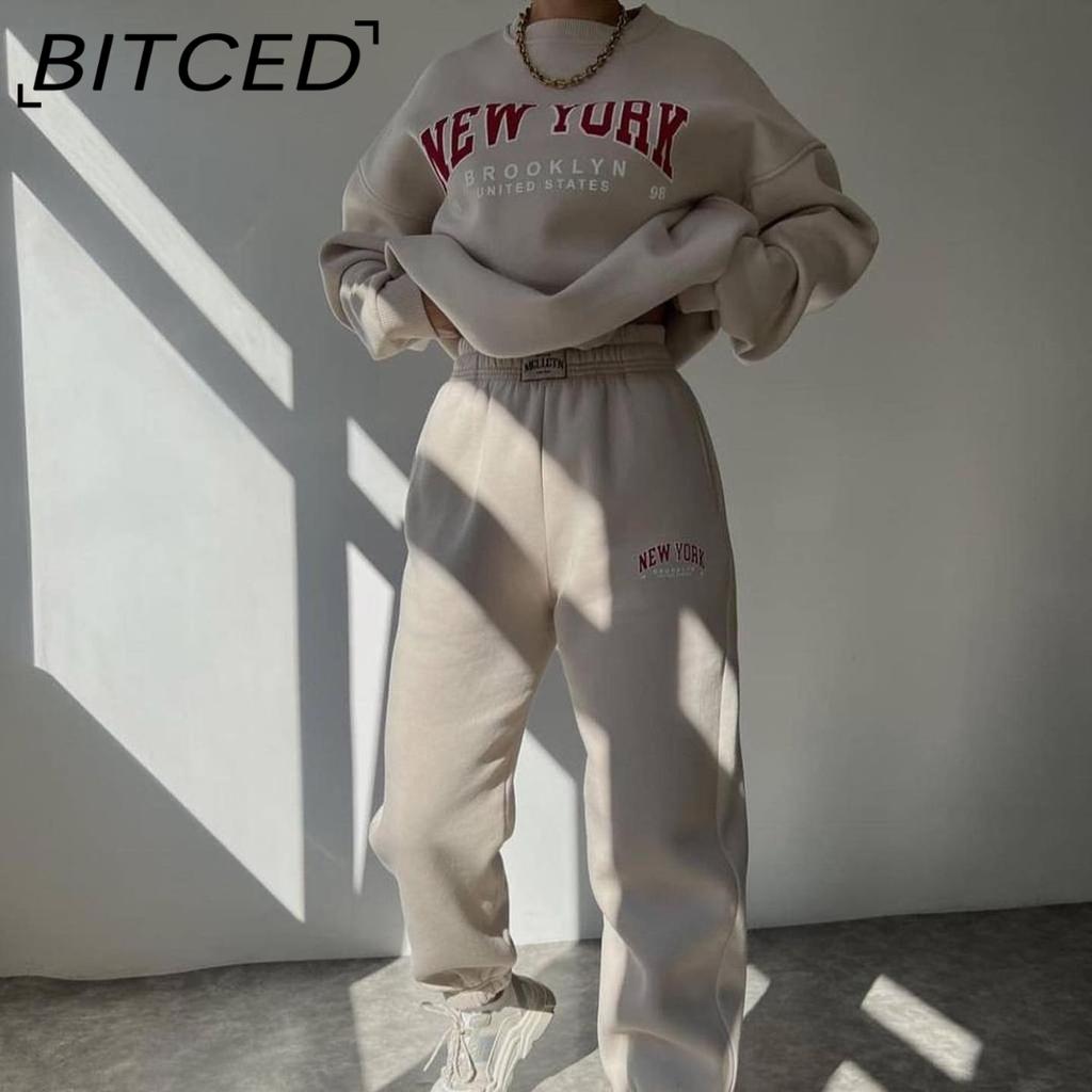 BITCED женский повседневный модный толстый костюм с принтом плюс флисовая толстовка с длинными рукавами, брючный костюм — купить товар онлайн с бесплатной доставкой по всему миру!