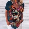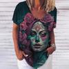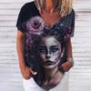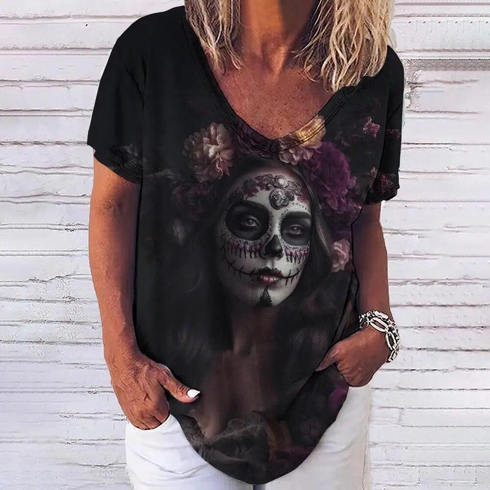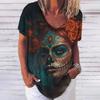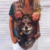Лето 2023, новинка, женский топ с 3D принтом черепа ужасов и v-образным вырезом, футболка с короткими рукавами, повседневная забавная одежда Harajuku Y2K Day Of The Dead