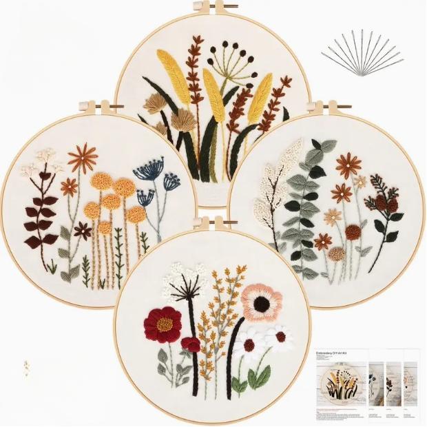 1/4 шт. набор для вышивания цветов и растений, включая пяльцы