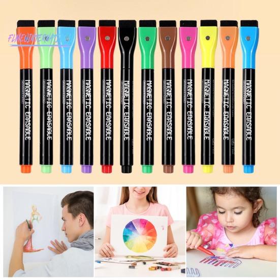 Представляем наш набор магнитных стираемых маркеров, идеально подходящий для всех ваших потребностей в письме на гладких многоразовых поверхностях! Этот набор включает в себя 12 ярких ручек разных цветов, позволяющих выразить свое творчество и удовлетворить ваши цветовые предпочтения. Маркеры имеют магнитную адсорбцию, гарантирующую, что они надежно удерживаются на досках или различных железных изделиях.
