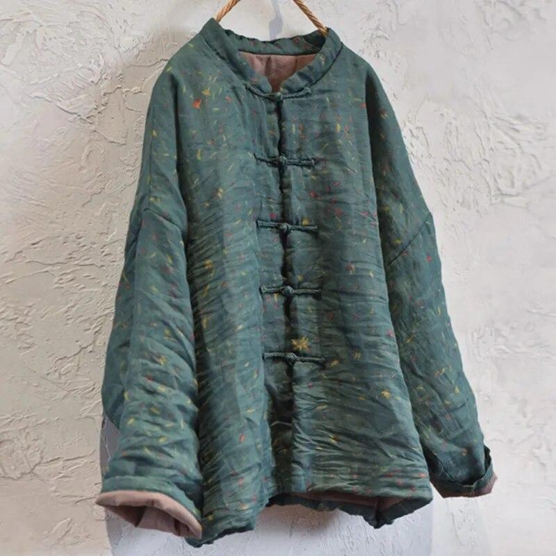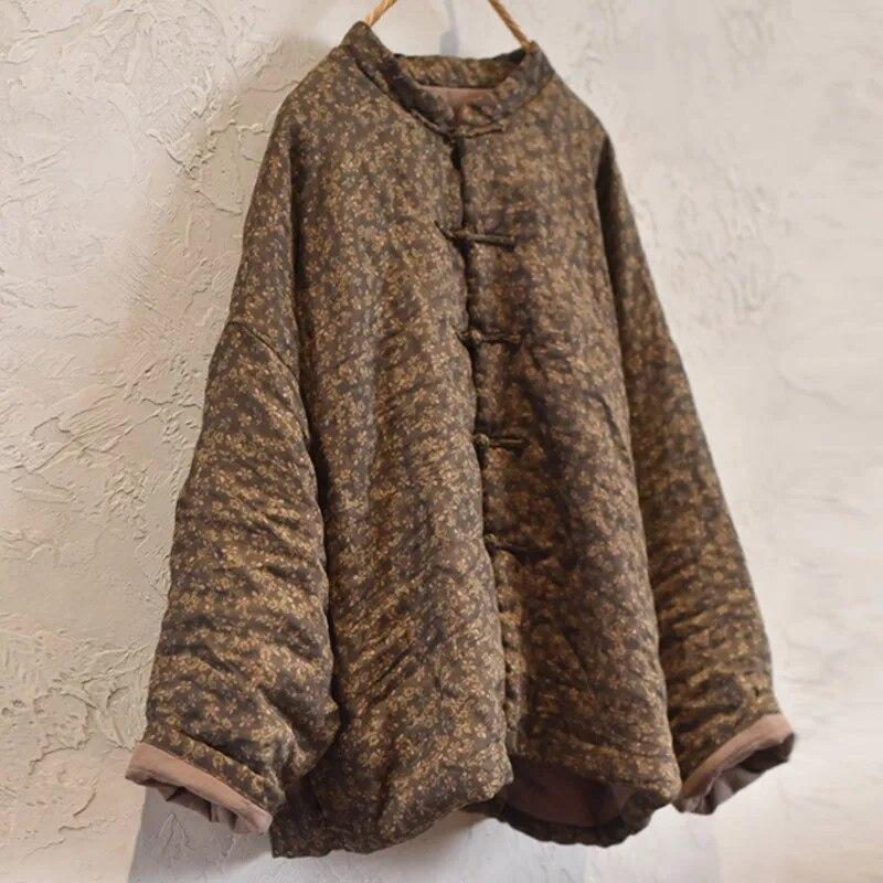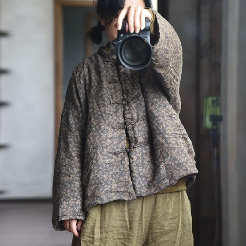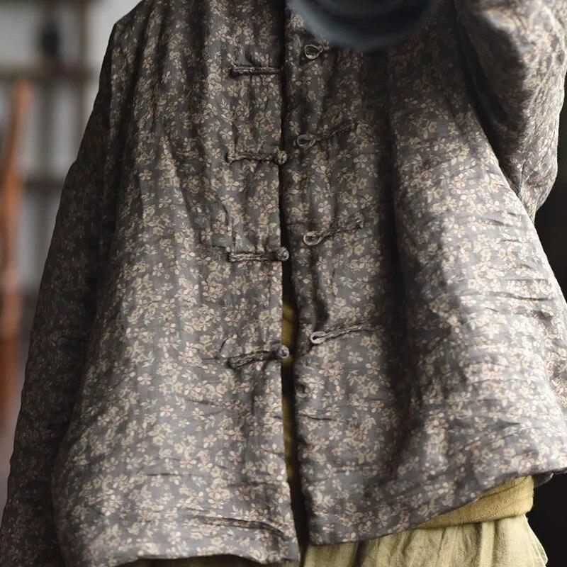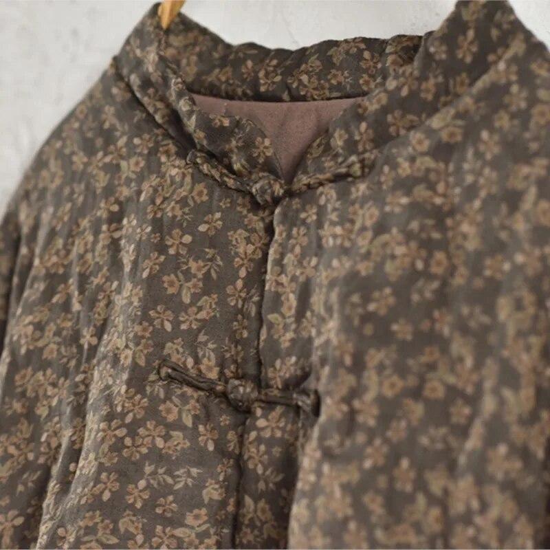 Johnature Женские зимние парки в китайском стиле, теплые пальто с длинными рукавами и пуговицами, женские винтажные парки с цветочным принтом