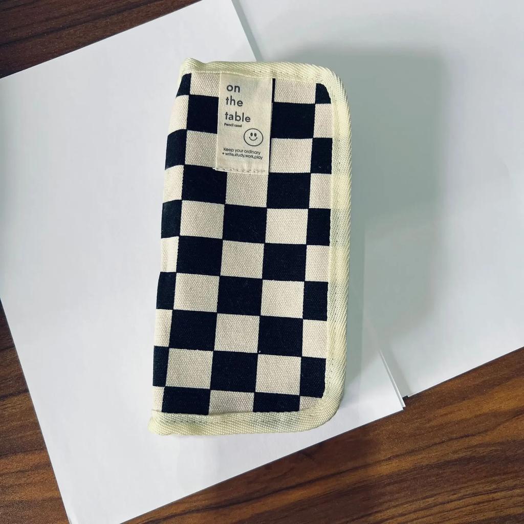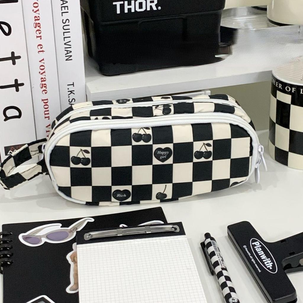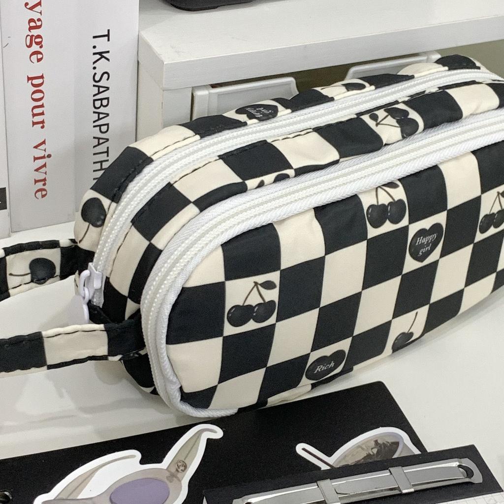 1 шт. модный студенческий пенал классический шахматная доска канцелярские принадлежности сумка-карандаш черный, белый цвет большая вместительная сумка для хранения скрапбукинга